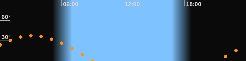 | Höchster Stand (Kulmination) | 03:10 Uhr (h = 37,5°) |