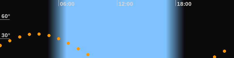| Höchster Stand (Kulmination) | 03:44 Uhr (h = 37,5°) |