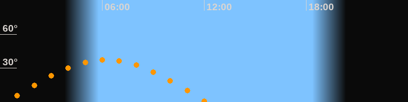 | Höchster Stand (Kulmination) | 06:14 Uhr (h = 37,5°) |