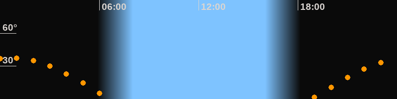 | Aufgang | 18:46 Uhr im Osten (αAz = 92°) |