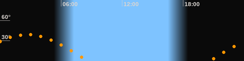 Untergang08:41 Uhr im Westen (αAz = 270,5°)
