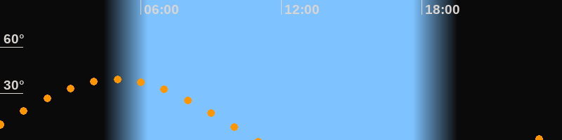 Höchster Stand (Kulmination)04:55 Uhr (h = 39,1°)
