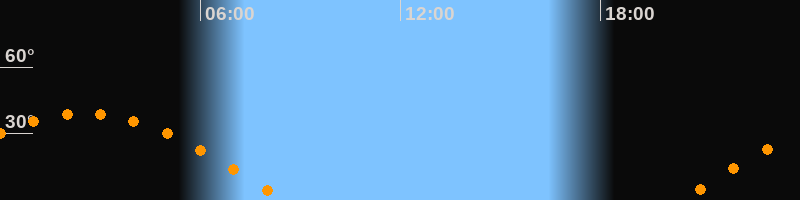 Höchster Stand (Kulmination)02:30 Uhr (h = 39,1°)