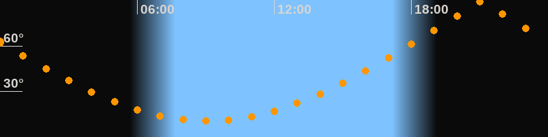 Höchster Stand (Kulmination)21:03 Uhr (h = 89,1°)