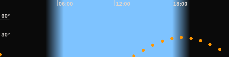 | Höchster Stand (Kulmination) | 19:05 Uhr (h = 31°) |