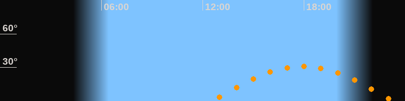 | Höchster Stand (Kulmination) | 17:55 Uhr (h = 31°) |