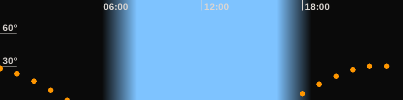 | Aufgang | 17:16 Uhr im Osten (αAz = 102,4°) |
