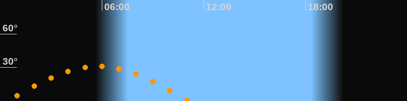 | Höchster Stand (Kulmination) | 05:46 Uhr (h = 31°) |