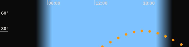 | Höchster Stand (Kulmination) | 18:13 Uhr (h = 31°) |