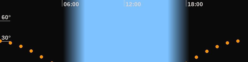 | Aufgang | 18:07 Uhr im Osten (αAz = 102,4°) |