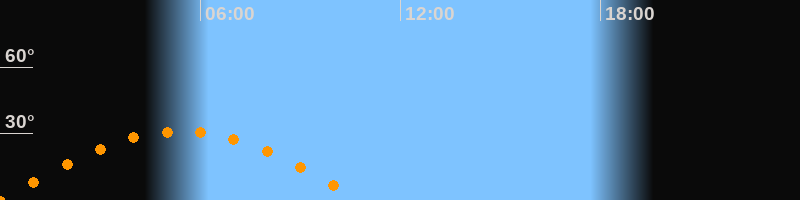 | Höchster Stand (Kulmination) | 05:25 Uhr (h = 31°) |