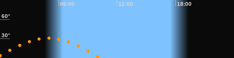 | Aufgang | 23:30 Uhr im Osten (αAz = 102,4°) |