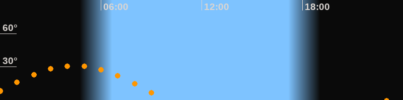 | Aufgang | 22:59 Uhr im Osten (αAz = 102,4°) |