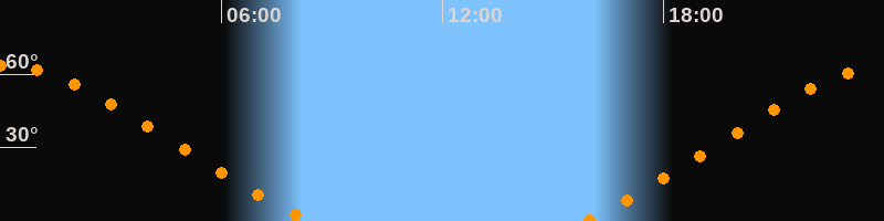 Höchster Stand (Kulmination)00:05 Uhr (h = 63,4°)