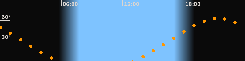 Höchster Stand (Kulmination)21:20 Uhr (h = 63,4°)