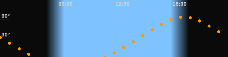 Höchster Stand (Kulmination)19:19 Uhr (h = 63,4°)