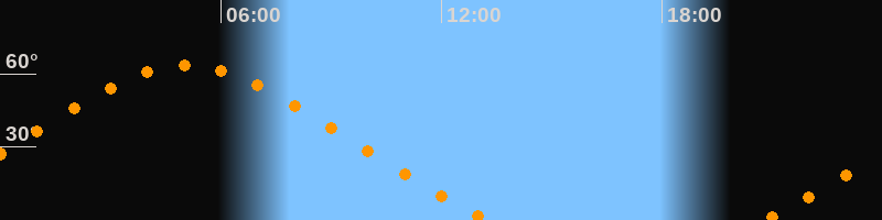 Höchster Stand (Kulmination)05:03 Uhr (h = 63,4°)
