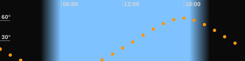 Höchster Stand (Kulmination)17:54 Uhr (h = 63,4°)