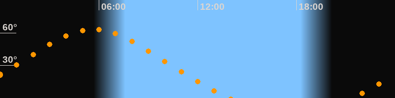 Höchster Stand (Kulmination)05:40 Uhr (h = 63,4°)