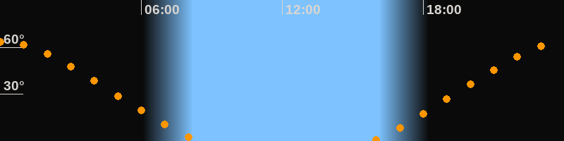Höchster Stand (Kulmination)00:04 Uhr (h = 63,4°)