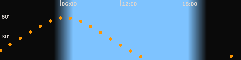 Höchster Stand (Kulmination)06:28 Uhr (h = 63,4°)