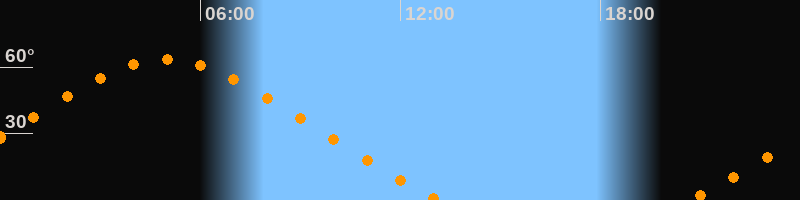 Höchster Stand (Kulmination)04:57 Uhr (h = 63,4°)