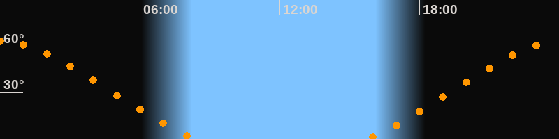 Höchster Stand (Kulmination)00:01 Uhr (h = 63,4°)
