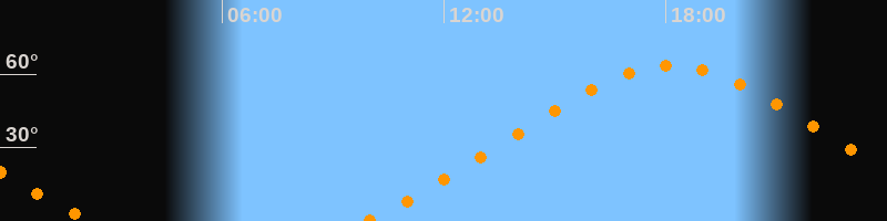 Höchster Stand (Kulmination)18:09 Uhr (h = 63,4°)
