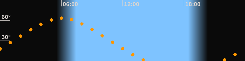 Höchster Stand (Kulmination)06:01 Uhr (h = 63,4°)