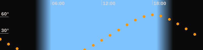 Höchster Stand (Kulmination)18:05 Uhr (h = 63,4°)