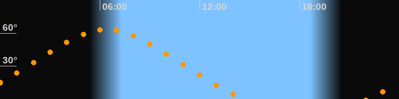 Höchster Stand (Kulmination)06:23 Uhr (h = 63,4°)