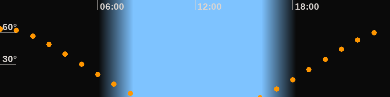 Höchster Stand (Kulmination)00:13 Uhr (h = 63,4°)