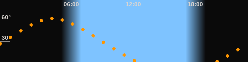 Höchster Stand (Kulmination)05:06 Uhr (h = 63,4°)