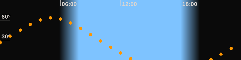 Höchster Stand (Kulmination)05:08 Uhr (h = 63,4°)