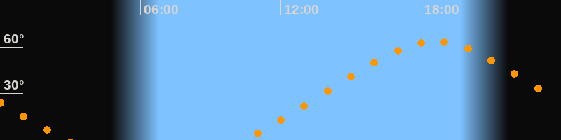 Höchster Stand (Kulmination)18:35 Uhr (h = 63,4°)