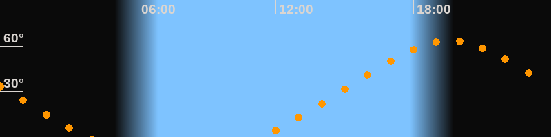 Höchster Stand (Kulmination)19:34 Uhr (h = 63,4°)