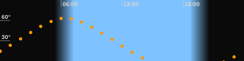 Höchster Stand (Kulmination)06:25 Uhr (h = 63,4°)