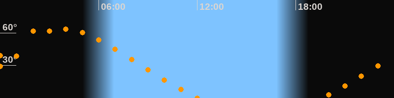 Aufgang19:30 Uhr im Nordosten (αAz = 48,9°)