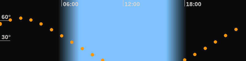 Höchster Stand (Kulmination)02:00 Uhr (h = 63,4°)