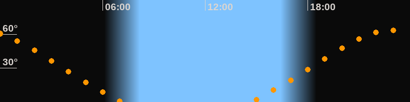 Aufgang14:35 Uhr im Nordosten (αAz = 48,9°)
