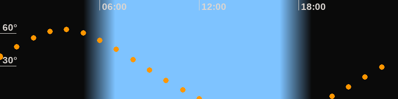 Höchster Stand (Kulmination)03:52 Uhr (h = 63,4°)