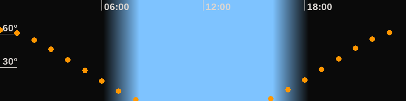 Höchster Stand (Kulmination)23:54 Uhr (h = 63,4°)