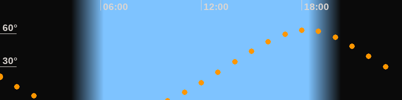 Höchster Stand (Kulmination)18:16 Uhr (h = 63,4°)