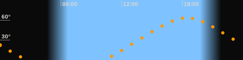 Höchster Stand (Kulmination)18:25 Uhr (h = 63,4°)