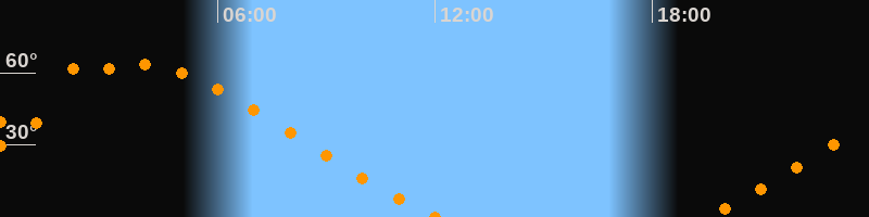 Aufgang19:27 Uhr im Nordosten (αAz = 48,9°)