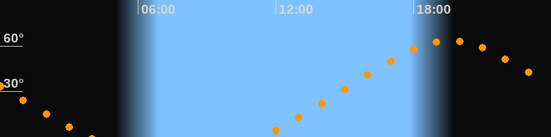 Höchster Stand (Kulmination)19:35 Uhr (h = 63,4°)