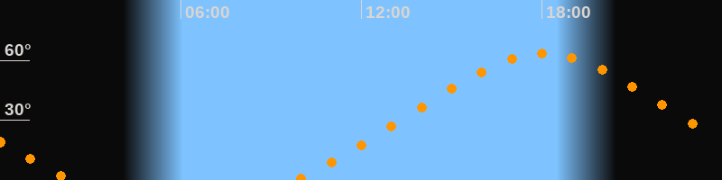 Höchster Stand (Kulmination)18:04 Uhr (h = 63,4°)