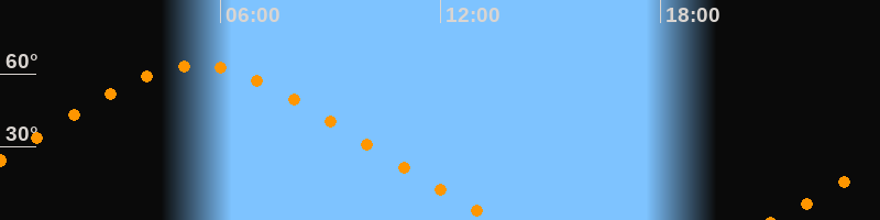 Höchster Stand (Kulmination)05:21 Uhr (h = 63,4°)