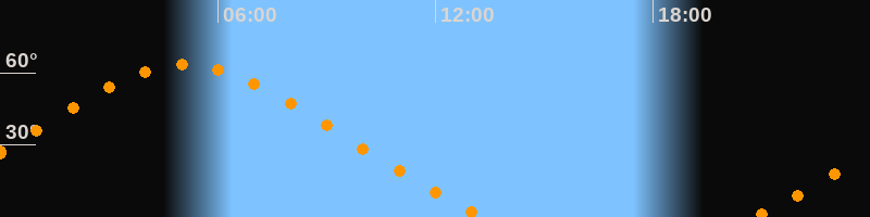 Höchster Stand (Kulmination)05:05 Uhr (h = 63,4°)