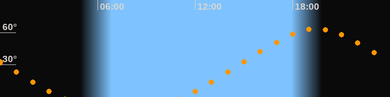 Höchster Stand (Kulmination)19:27 Uhr (h = 63,4°)